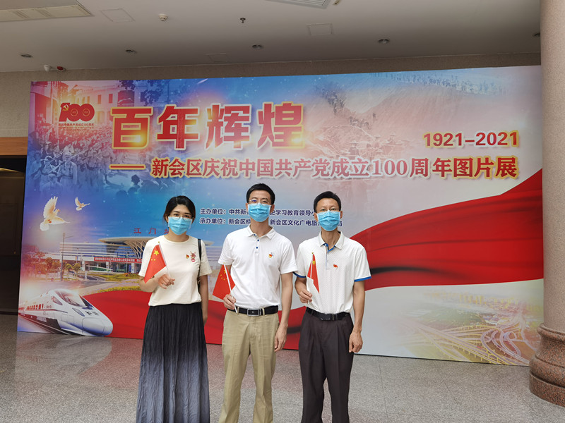 今天是2021年7月1日,是中国共产党成立100周年纪念日,党支部上午组织全体党员收看中央庆祝大会直播,大会直播后,接着收看学习习近平书记“七一”重要讲话,深化党史教育。收看直播结束后,组织全体党员前往新会区美术馆参观百年辉煌新会区庆祝中国共产党成立100周年图片展,图文并茂介绍中国共产党100年历史进程,以及在中国共产党领导下,新会区的社会发展进程和取得的经济成就。通过今天的活动,使全体党员充分认识到:一世纪风雨兼程,九万里风鹏正举。中国共产党的一百年,是矢志践行初心使命的一百年,是筚路蓝缕奠基立业的一百年,是创造辉煌开辟未来的一百年。在百年接续奋斗中,党团结带领人民创造了中华民族发展史、人类社会进步史上令人刮目相看的奇迹。胸怀千秋伟业,恰是百年风华。让我们更加紧密地团结在以习近平同志为核心的党中央周围,不断增强“四个意识”、坚定“四个自信”、做到“两个维护”,铭记党的奋斗历程,发扬党的光荣传统,传承党的红色基因,赓续共产党人的精神血脉,不忘初心、牢记使命,以昂扬的精神状态,在全面建设社会主义现代化国家新征程上披荆斩棘、奋力前行,不断夺取新时代中国特色社会主义新胜利。